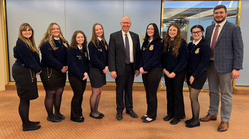 Rep. Martin Causer (R-Cameron/McKean/Potter) met with members of Otto-Eldred’s FFA program at the state Capitol this week for FFA’s State Legislative Leadership Conference. The group had a great conversation about agriculture, health care and other issues facing rural communities. Pictured, from left, are Ryon Stone, Leah Burrows, Gabby Long, Ellie Bennett, Causer, Brooklynn Pearce, Emma Button, Danica Austin, and Brandon Witmer, agricultural science teacher and FFA advisor.